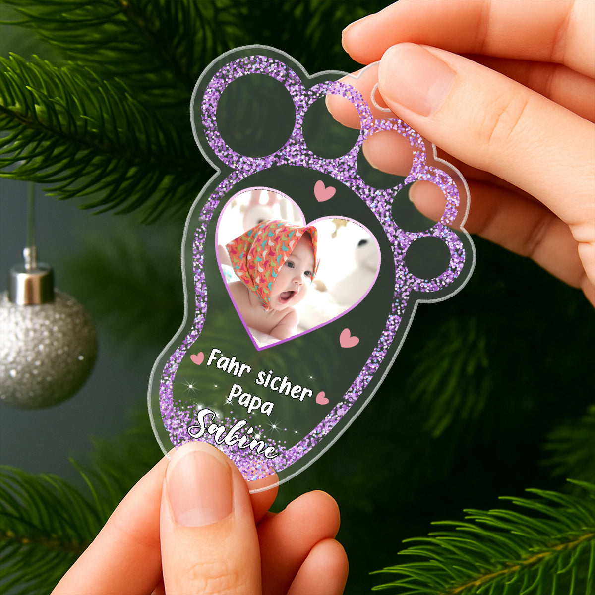 Titel: Baby Fuß Autoanhänger aus Acryl – Mit Foto personalisierbar