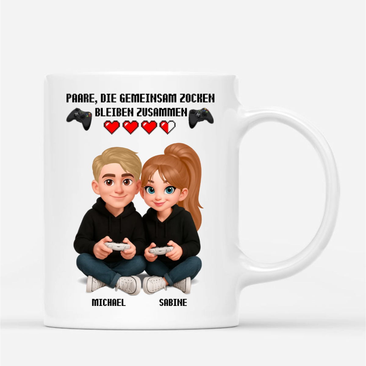 Es gibt nichts Schöneres, als den Morgenkaffee gemeinsam zu genießen, bevor die nächste Gaming-Session startet. Diese personalisierte Tasse ist mehr als nur ein Geschenk – sie ist ein Versprechen: Zusammen zocken, zusammen bleiben. Jetzt personalisieren und eurem Lieblingsmensch eine Freude machen!