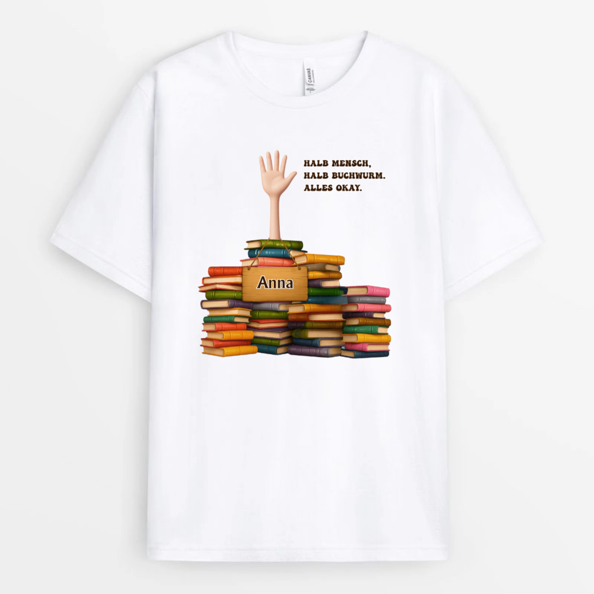 Halb Mensch. Halb Buchwurm. Alles okay - Personalisiertes Geschenk | T-Shirt Für Frauen